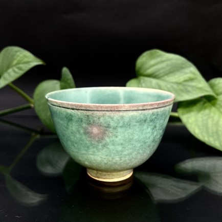 Пиала из фарфора Цзиндэчжэнь ручной работы. Авторская глазурь дровяного обжига, цвет цинхо - минеральный голубой (краски из лазурита и малахита)