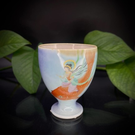 Главная / ЧАЙНАЯ УТВАРЬ / Чашка / Чашка фарфор глазурь бодхисаттва на карпе 55 мл