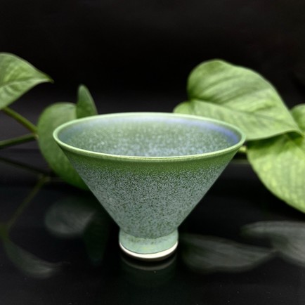 Пиала из фарфора Цзиндэчжэнь ручной работы. Авторская глазурь дровяного обжига, цвет цинхо - минеральный голубой (краски из лазурита и малахита)