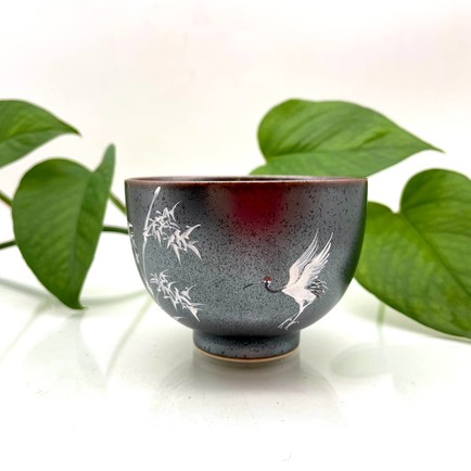 Главная / ЧАЙНАЯ УТВАРЬ / Чашка / Чашка фарфор глазурь журавль и бамбук 90 мл