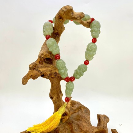 Главная / ЧЕТКИ / Четки нефрит архаты 9 бусин 15х10 мм