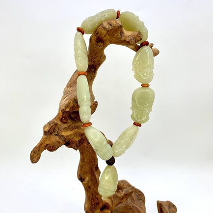 Главная / ЧЕТКИ / Четки нефрит архаты 9 бусин 30х20 мм
