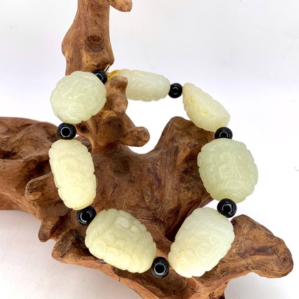 Четки нефрит орнамент 7 бусин 30х20 мм