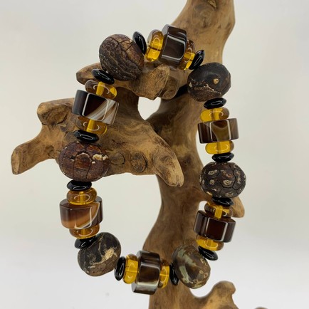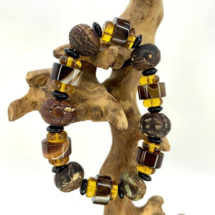 Главная / ЧЕТКИ / Четки окаменелая древесина и агат 12 бусин 10х15 мм